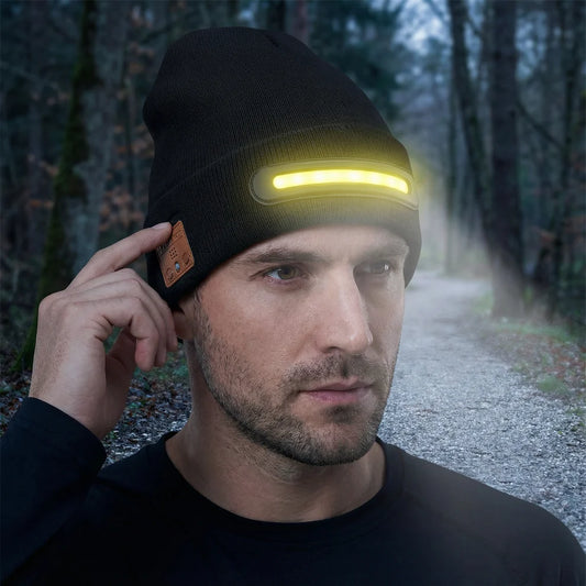 LED Bluetooth Mütze mit Licht – Kabellose Musik, Wiederaufladbar, Einheitsgröße, Schwarz