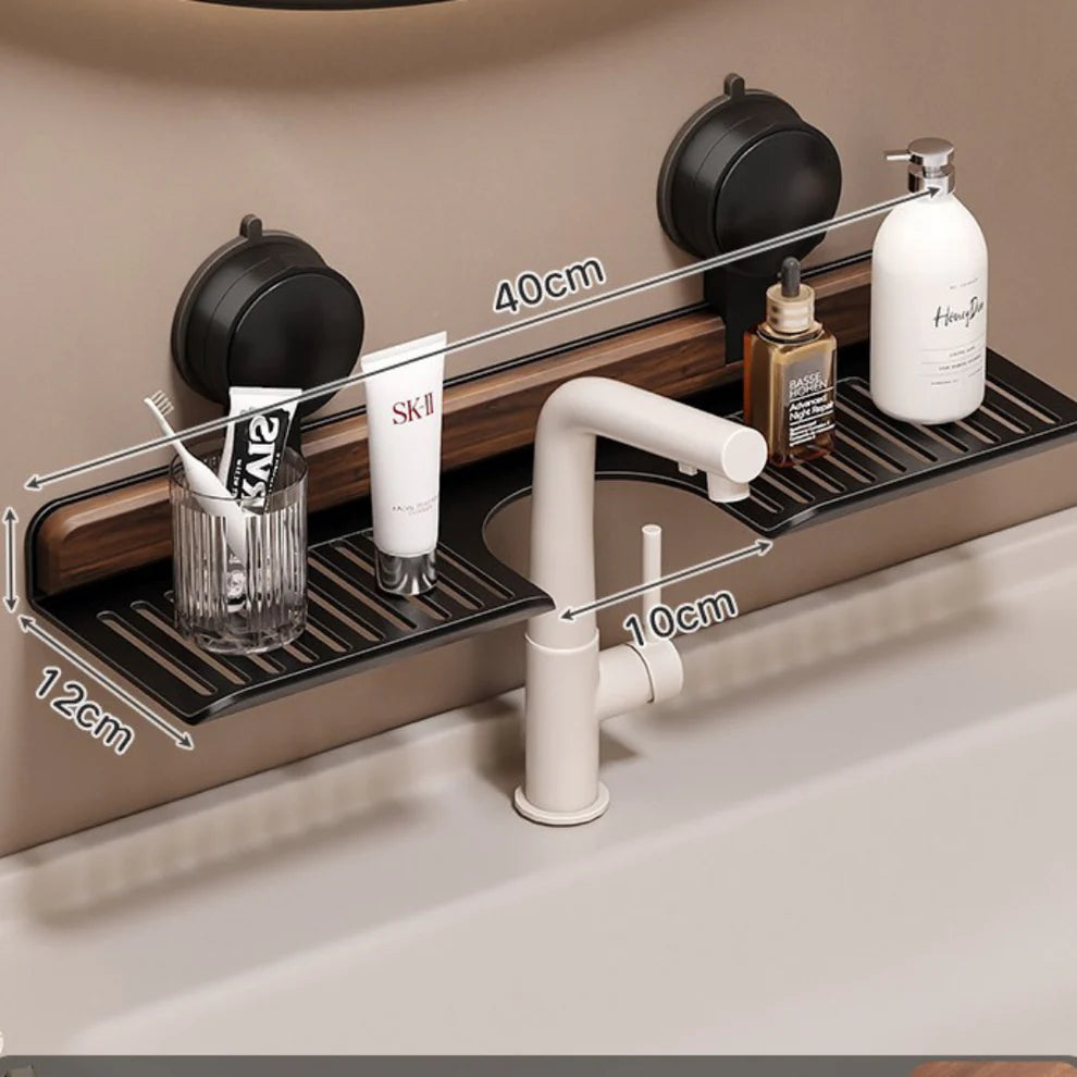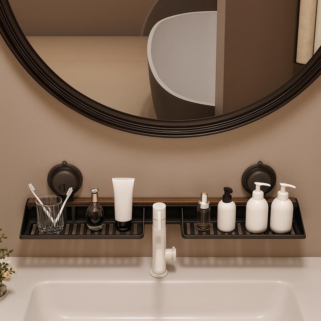 Dieses elegante Badregal bietet dir eine praktische Aufbewahrungslösung direkt am Waschbecken oder Spiegel. Es wird ohne Bohren mit starken Saugnäpfen befestigt und hält zuverlässig Zahnbürsten, Seifen, Cremes oder Lotionen. Das wasserfeste und leicht zu reinigende Design sorgt dafür, dass deine Produkte stets griffbereit und ordentlich verstaut sind.